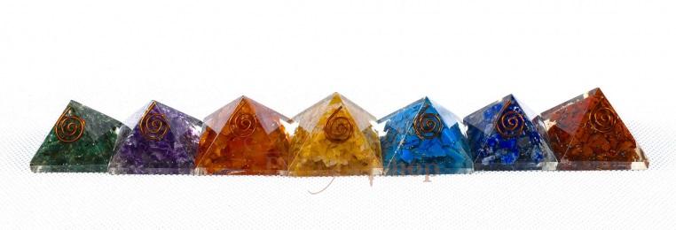» Kolekcia orgonitových pyramíd s obsahom polodrahokamov "7 CHAKRAS"